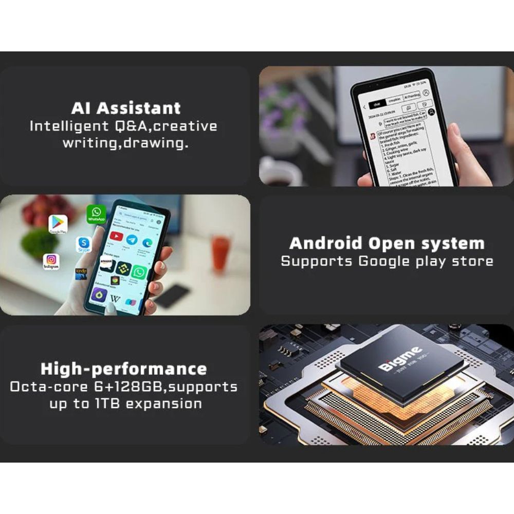 The Bigme HiBreak is a breakthrough E-Ink smartphone built for people who want less eye strain and more focus. With its 5.84-inch E-Ink display, the HiBreak offers a paper-like reading and browsing experience ideal for books, notes, email, messaging, and long screen use. Unlike traditional phones with harsh backlit screens, the E-Ink panel greatly reduces eye fatigue and eliminates blue-light discomfort.